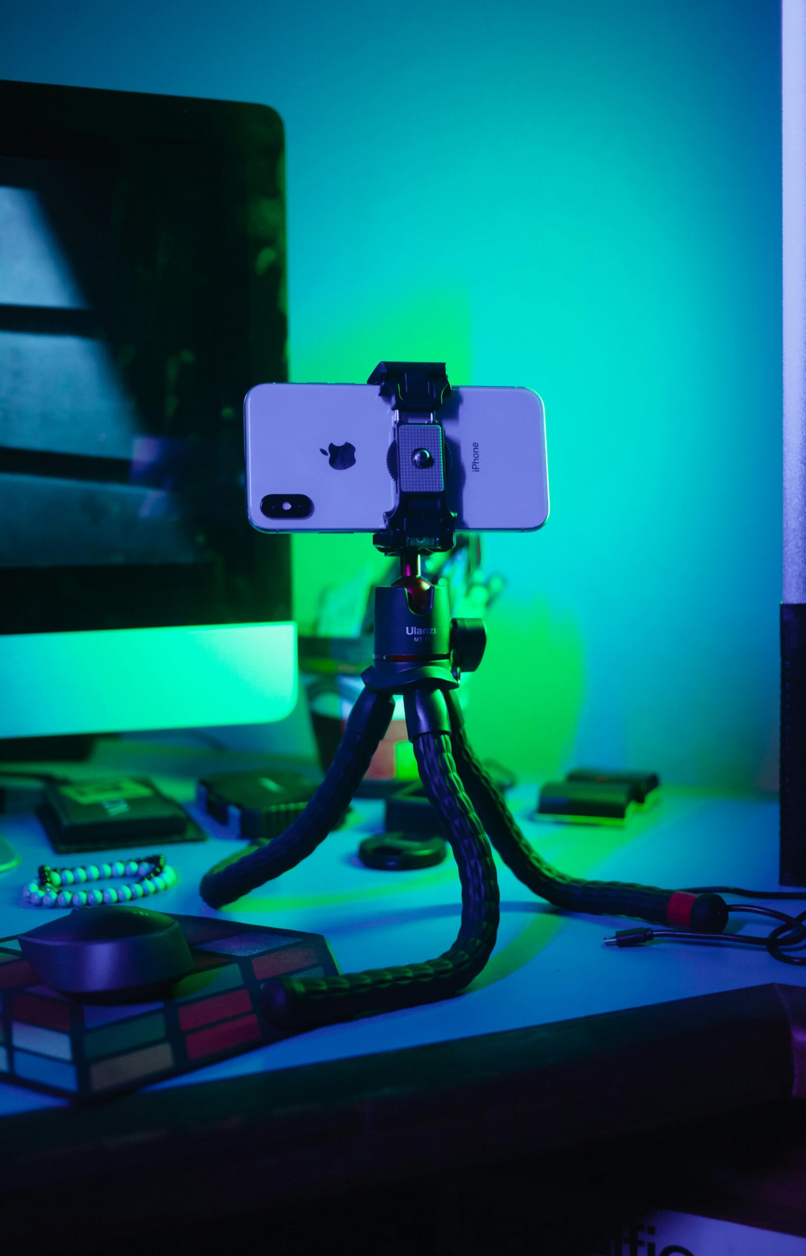 Flexible octopus-style tripod legs wrap around any surface. Includes Bluetooth remote shutter for selfies and group photos. Universal phone holder fits all smartphones. Lightweight and portable for content creation on the go.